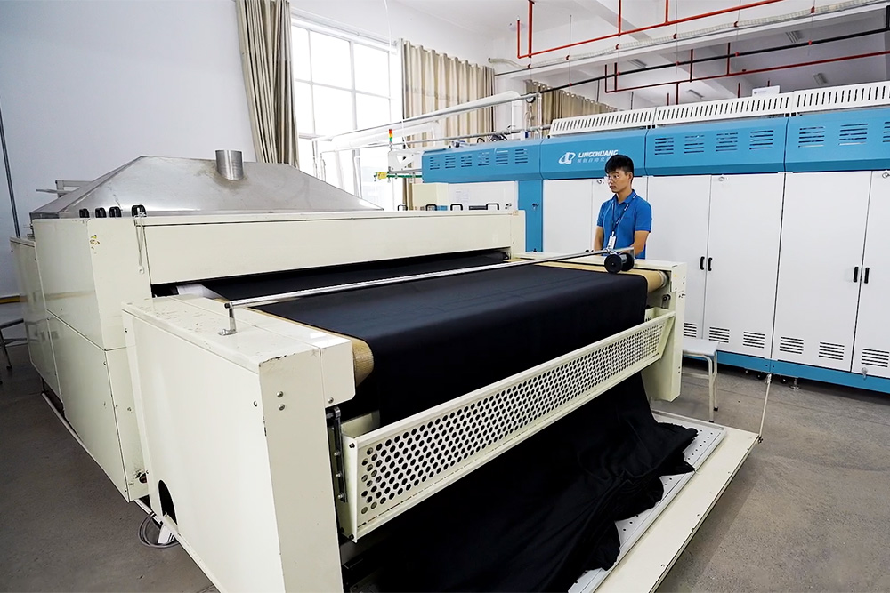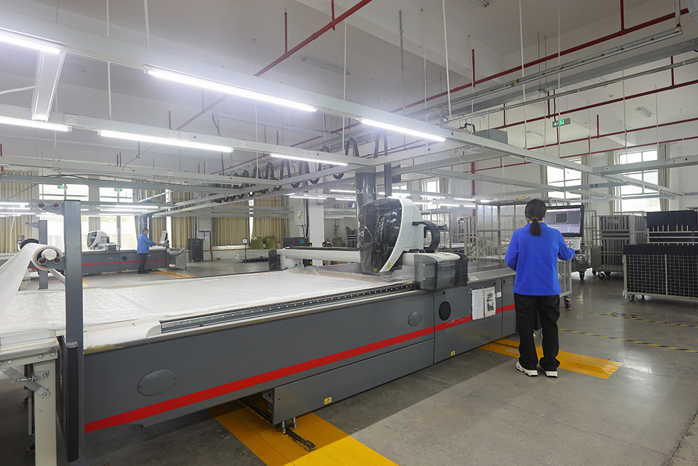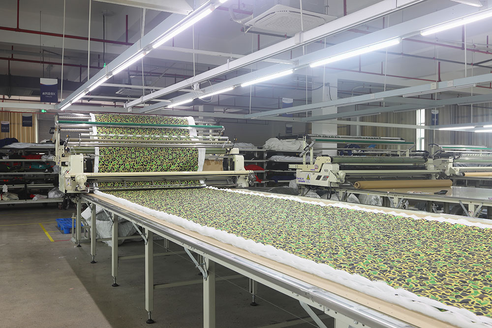 公司自动化制造设施完整,现已形成数控验布、全自动裁剪、升华印印花、数码印花、吊挂缝制生产、数字化生产管理、隧道后整理的一站式生产流程。