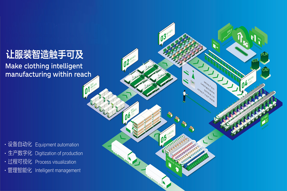 公司自动化制造设施完整,现已形成数控验布、全自动裁剪、升华印印花、数码印花、吊挂缝制生产、数字化生产管理、隧道后整理的一站式生产流程。