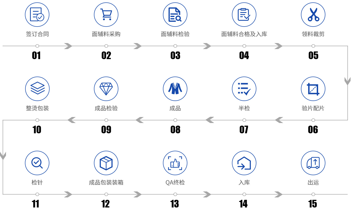 致力于面辅料的专业检验,保障产品质量,采用国际通用的检验标准,拥有先进的面辅料检验设备和严格的质检培训体系。